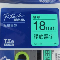 兄弟/Brother TZe-741 绿底黑字 18mm标签带 兄弟标签机打印色带