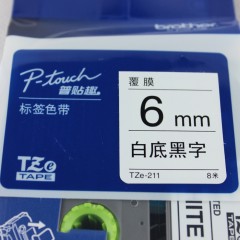 兄弟/Brother TZe-211 白底黑字6mm标签带标签机打印色带覆膜标签纸