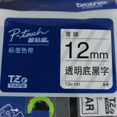 兄弟/Brother TZe-131 透明底黑字 12mm标签带 兄弟标签机打印色带