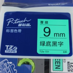 兄弟/Brother TZe-721 绿底黑字 9mm标签带 兄弟标签机打印色带