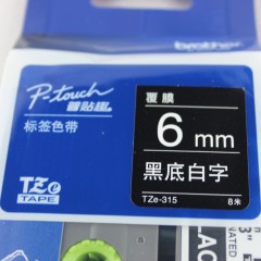 兄弟/Brother TZe-315 标签色带 贴普趣覆膜 6mm黑底白字标签带