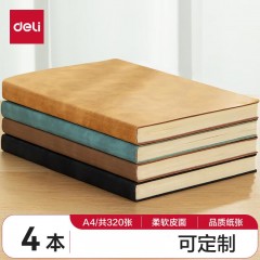 得力(deli)[4本装]商务笔记本子羊巴皮面本记事本会议记录本4本A4 BP140 单位:组
