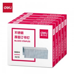 得力(deli)23/13不锈钢厚层订书钉/订书针 1000枚/盒 5盒装 单位:组