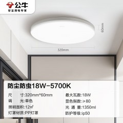 公牛(BULL)吸顶灯IP50防尘防虫卧室阳台过道灯MX-A018C-AS全白18W 单位:个