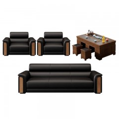 蛮曲 接待洽谈办公沙发 MQ-NP11 黑色牛皮3+1+1组合 单位:套