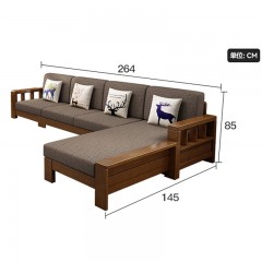 蛮曲 现代实木沙发组合四人位+贵妃264*145*85 单位:套