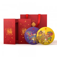 大益TAETEA茶叶普洱茶生熟茶组合新版福禄双喜礼盒357g*2饼 单位:套