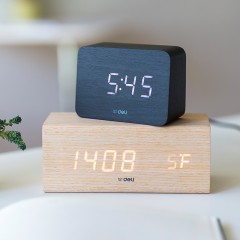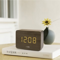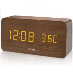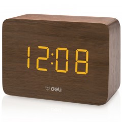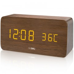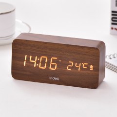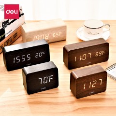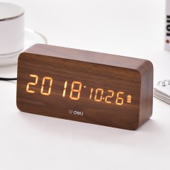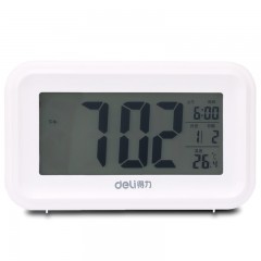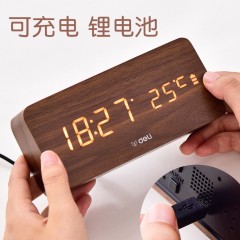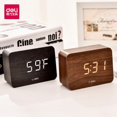 得力 多功能声控迷你电子钟 现代时尚简约床头钟 卧室客厅闹钟8814