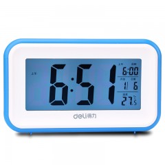 得力 创意小闹钟卧室床头夜光智能家用电子时钟温度计桌面学生宿舍