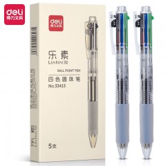 得力(deli)多功能4色圆珠笔 0.7mm子弹头按动笔原子笔中油笔 (黑红蓝绿) 5支/盒DL-33413 单位:盒