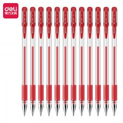 得力(deli)0.5mm经典办公中性笔签字笔 子弹头红色12支/盒 单位:盒