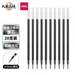得力(deli)0.5mm黑色中性笔笔芯 子弹头水笔签字笔替芯 20支/盒6916 单位:盒