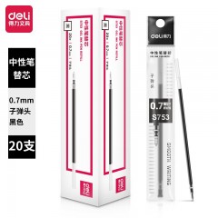得力(deli)0.7mm黑色子弹头中性笔笔芯 水笔签字笔替芯 20支/盒 单位:盒