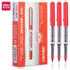 得力(deli)直液笔中性笔 0.5mm子弹头签字笔学生考试笔走珠笔水笔 红色 办公用品12支/盒S656 单位:盒