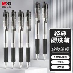 晨光(M&G)文具圆珠笔中油笔0.7mm子弹头软胶握手原子笔按动笔学生办公用品黑色12支/盒BP8106 单位:盒