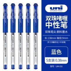 三菱(Uni)UM-151财务用笔0.38mm学生用中性笔(替芯UMR-1)蓝色 5支装 单位:盒