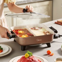 美的(Midea)DY3030Easy102鸳鸯锅电火锅宿舍电煮锅小电锅一体多功能锅3--4个人用多功能煎炒涮锅电热锅鸳鸯锅电火锅专用锅 6L 单位:个