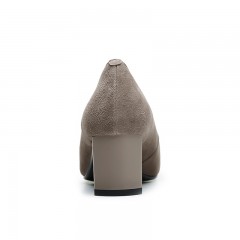 红蜻蜓 真皮女单鞋春秋布洛克休闲粗跟女鞋皮鞋
