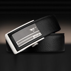 七匹狼 男士自动扣黑色整张头层牛皮皮带真皮裤带腰带7A313400000