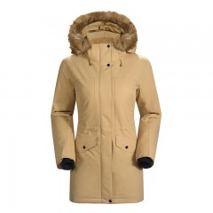 KAILAS女装秋冬户外防寒 长款加厚毛领羽绒外套 KG2033603 浅卡其 (尺码:XS/S/M/L/XL/2XL)单位:件