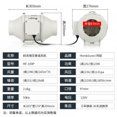 鸿冠 圆形管道风机强力抽风机4寸排风机换气扇 hf-100p