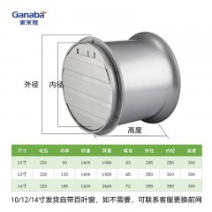 家来宝 排风扇工业圆筒抽风机百叶窗换气扇 14寸强圆带百叶