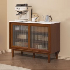 蛮曲 实木餐边柜岩板原木柜子现代简约餐厅储物柜橱柜家用酒柜茶水柜 胡桃色100*40*83cm岩板面 单位:个