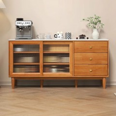 蛮曲 实木餐边柜岩板原木柜子现代简约餐厅储物柜橱柜家用酒柜茶水柜 樱桃木色120*40*83cm 岩板面 单位:个