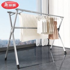 美丽雅 晾衣架落地可折叠不锈钢晾衣杆阳台卧室挂衣架家用晒被架 【三杆款】免安装 可伸缩1.3-2m 单位:个