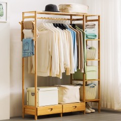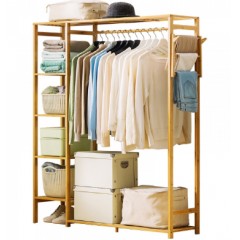 木马人 简易衣帽架实木卧室落地挂衣架柜子简约现代衣服包置物家用