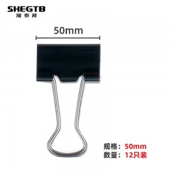晟泰邦 彩色长尾夹 金属收纳燕尾夹夹 办公用品鱼尾夹 【黑色款】50mm 1盒/12只 单位:盒
