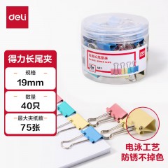 得力(deli)40只19mm彩色长尾夹票夹 5#小号金属燕尾夹票据文件夹子 40只/筒 8555 单位:筒