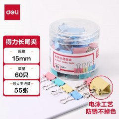 得力(deli) 60只15mm彩色长尾夹票夹 6#小号金属燕尾夹 60只/筒 8556 单位:筒