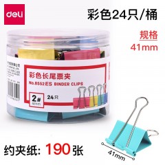 得力(deli)24只41mm彩色长尾夹票夹 2#大号金属燕尾夹票据文件夹子 办公用品 8552ES 单位:盒