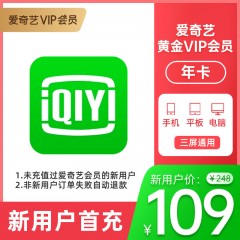 爱奇艺 黄金VIP会员12个月 视频会员年卡不支持TV端 【新用户首充】