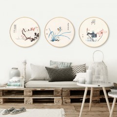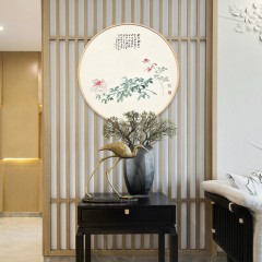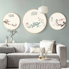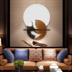 国产 钉子画新中式圆形软装画山水立体装饰画样板房玄关实物画手工挂画