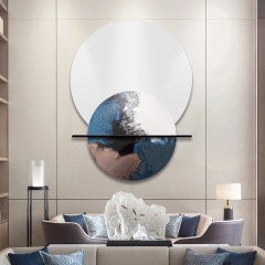 国产 现代中式手绘壁画抽象立体画重叠圆形油彩挂画客厅玄关壁饰装饰画