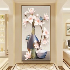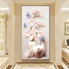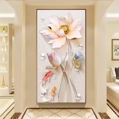 国产 新简约玄关装饰画过道挂画现代客厅走廊背景墙面壁画竖版花开富贵