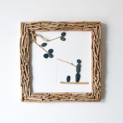 国产 居慢生活 纯手工木制石头画北欧客厅装饰画沙发背景墙挂画三联画