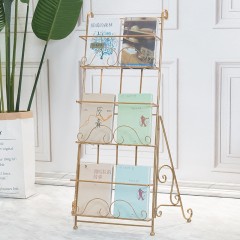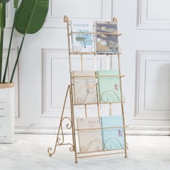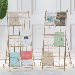 国产 北欧金色杂志架家用书报架营业厅资料架轻奢架子报刊架书架定制