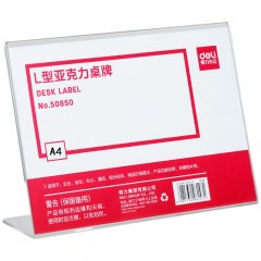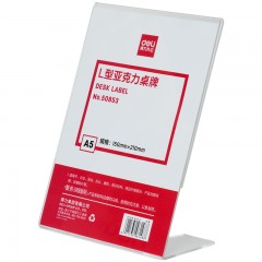 得力 50853L型亚克力桌牌二维码牌子展示牌会议名称标价格牌桌签牌