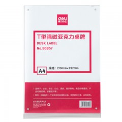得力 A4强磁T型台签亚克力水晶台签展示牌强磁台卡牌酒店会议桌牌50857