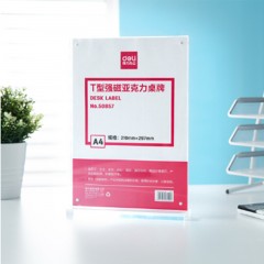 得力50857T型强磁亚克力桌牌(透明)(单位:只)