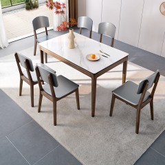 全友家居 餐桌北欧风岩板餐桌实木框架简约稳固结构餐厅长条桌吃饭桌子127902 餐桌(岩板)+127902餐椅*6 单位:套