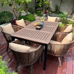 紫叶 户外阳台桌椅铁艺绳编现代简约北欧庭院酒店花园咖啡厅休闲藤椅子 4把拿铁椅+1【160*90长桌】 单位:套