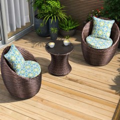 紫叶 阳台桌椅三件套现代简约手工藤椅组合户外休闲小茶几椅咖啡桌 伽罗阳台套(一桌二椅) 单位:套