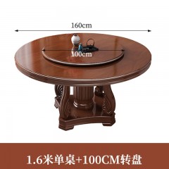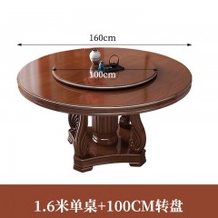 蛮曲 实木圆形餐桌带转盘中式家用圆桌 ( 1600*1600*750)1.6米桌+带转盘+10椅【胡桃色】 单位:套