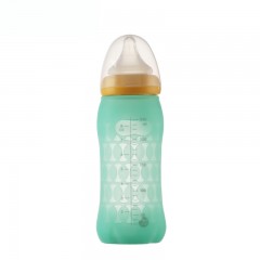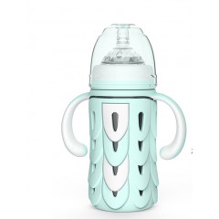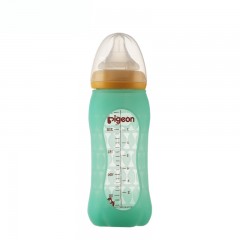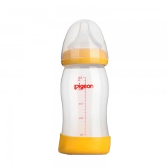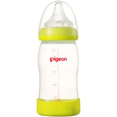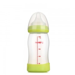 贝亲 宽口径硅胶奶瓶套240ml配玻璃奶瓶 绿BA104/黄BA103