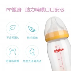 贝亲 奶瓶宽口径PP塑料奶瓶240ml配M号奶嘴黄色AA79