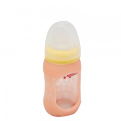 贝亲 标准口径硅胶奶瓶套200ml西柚红BA109 搭配玻璃奶瓶
